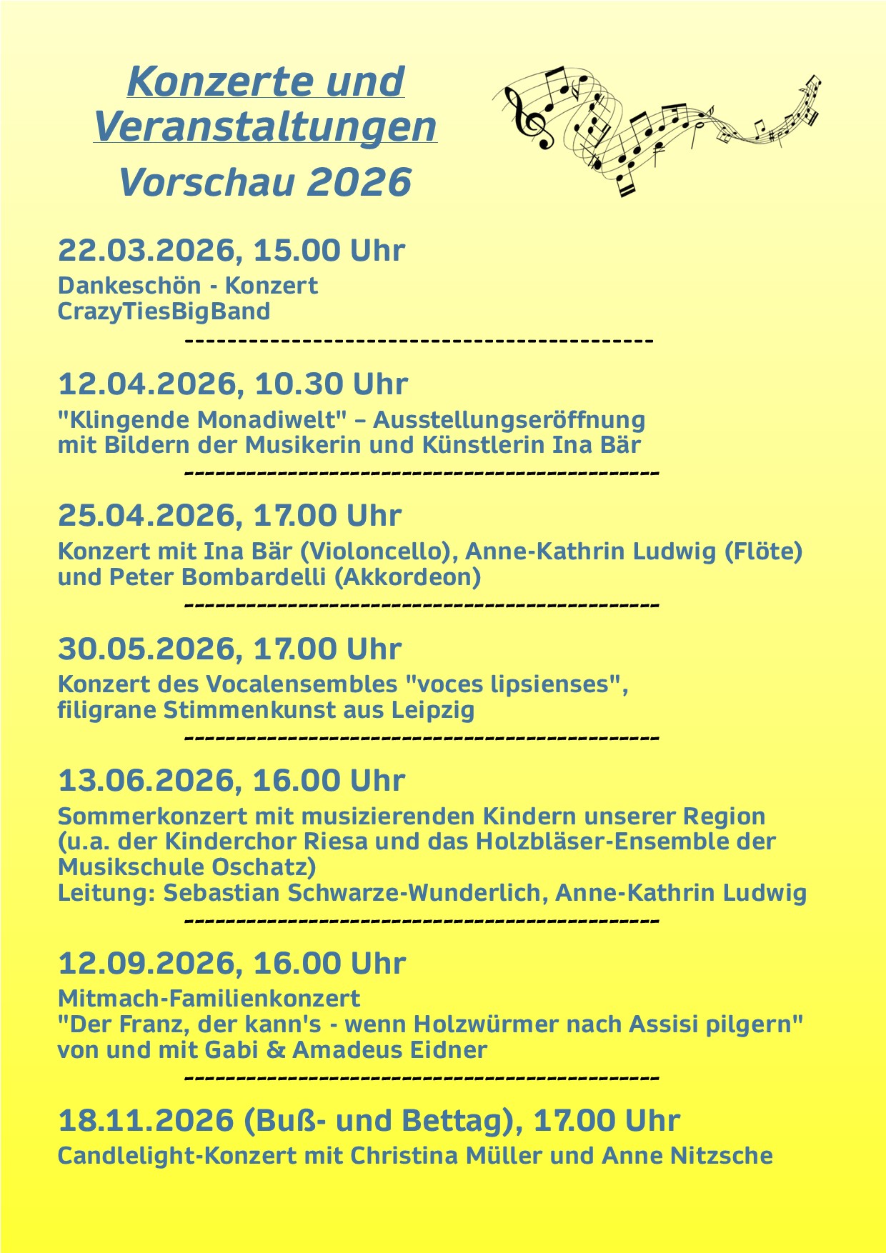 wertvoller Konzerte und Musiken, die gern besucht werden. Zur Strehlaer